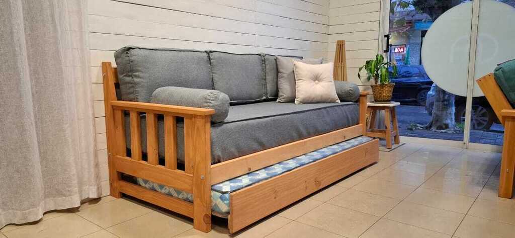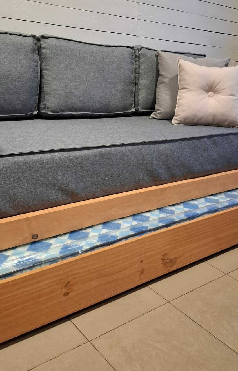 🛋SUPER COMBO!! Diván Cama Berlin Con Respaldo Roble Claro ( 2 x 0.90 Mts) + Carro Cama + Set (Funda Colchón + 3 Almohadones Respaldo Desmontables + 2 Caramelos) Chenille Plain o Alpha Anti desgarro Color a Elección + Colchón Superior 17 cm Linea Eco + Colchón Carro Cama 13 cm.